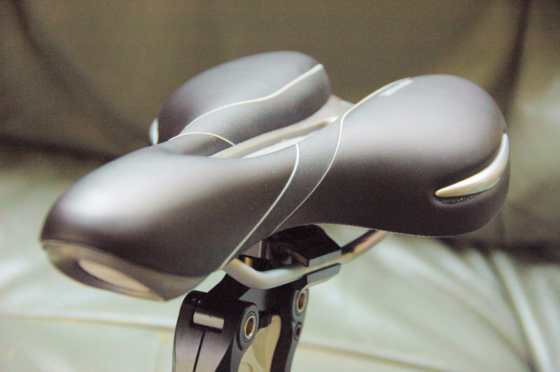 サドル内部に衝撃緩和素材としてジェルを仕込む新機能のシートです。