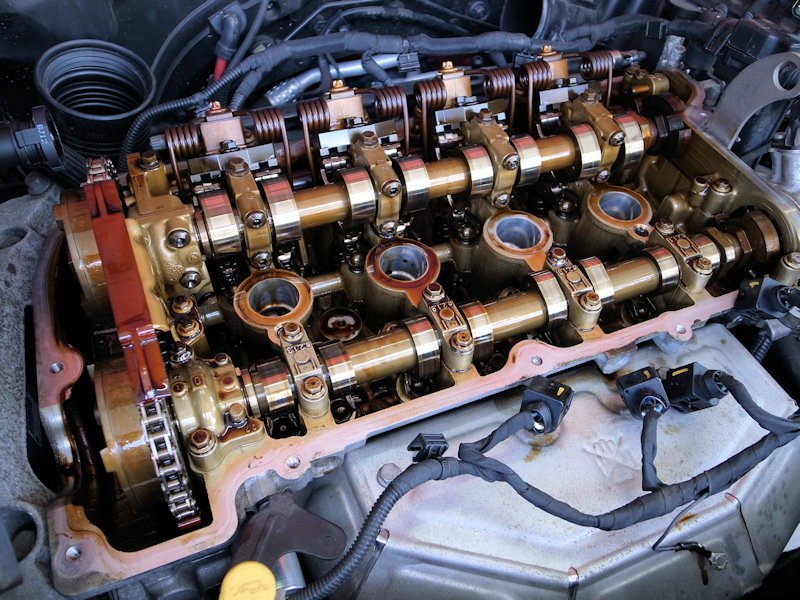 最終的にはエンジンのヘッドカバーを外し、タイミングチェーンの