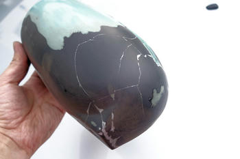 案の定、琺瑯は何千度に耐えること無く溶け落ち、溶接部が貫通して出べそ状態。