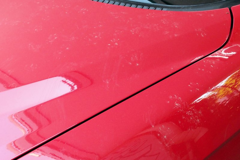 さて、拭き上げてボディーを確認してみると鱗のような雨染みがビッシリ。