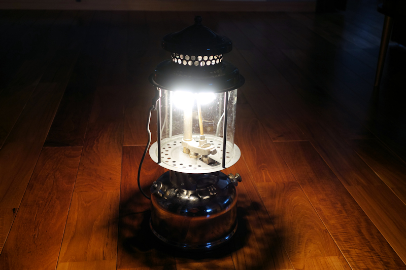 帰宅後、昨日修理の終わったランタンの再点火テスト。