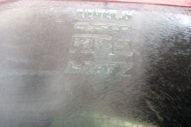 リアガラスに水を掛けたところ、以前貼ってあったデカールの痕が。(^^;)