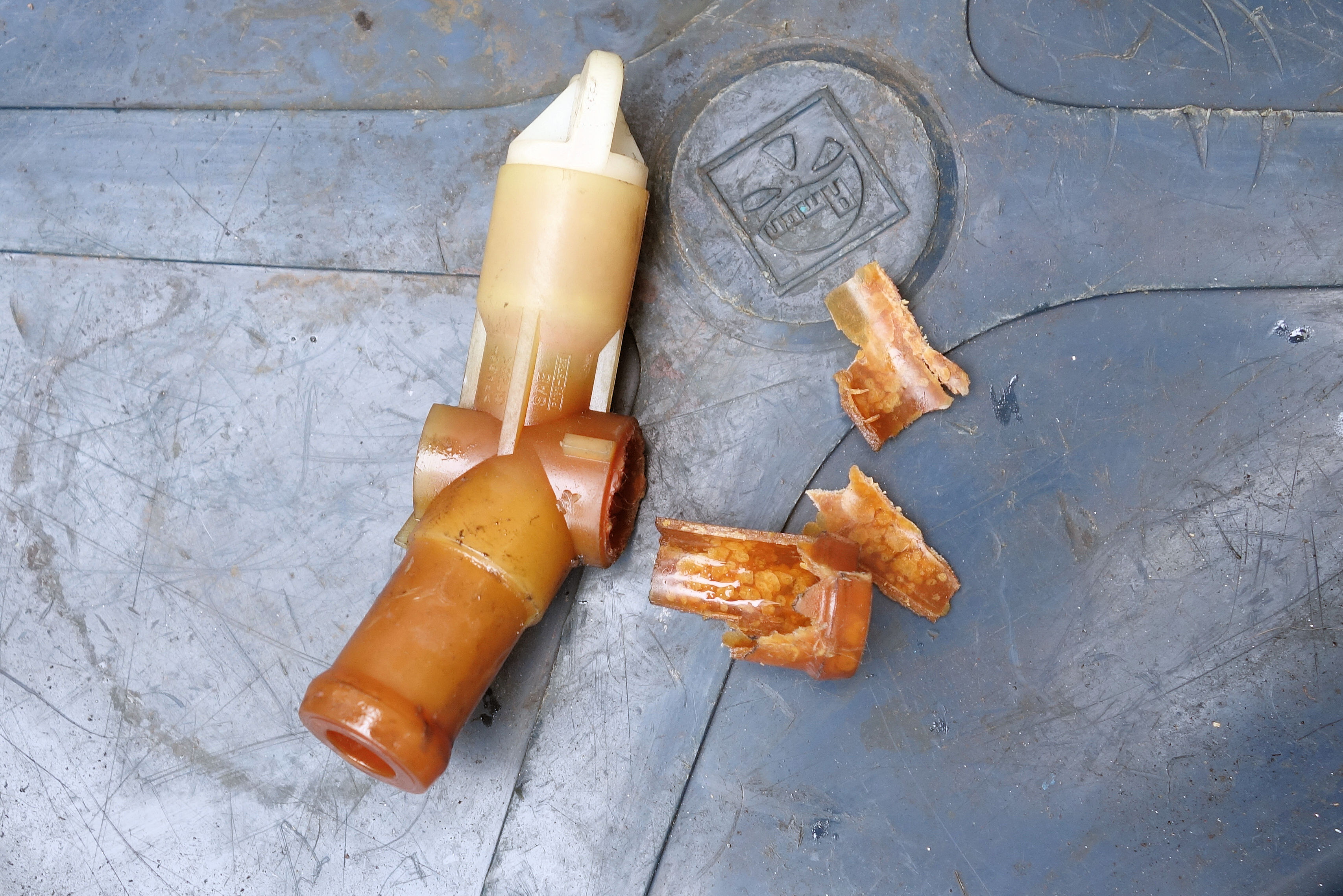 実はこれ、酸化した古いゴム部品の表面が溶け出した物。