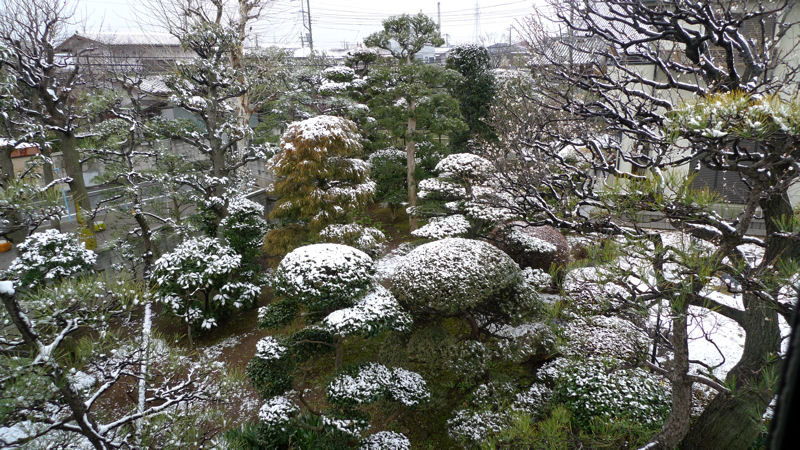 窓を開けると、庭木が思っていたより白くなっていました。