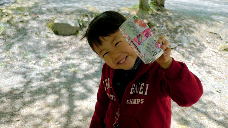 空き缶を的にして遊んでいると息子が黙っておりません。ボクも!!