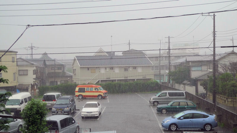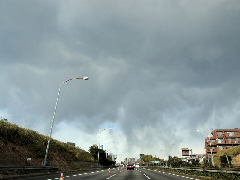 走行していた車の半数が、ハザードを出して路側帯へと避難して行きました。