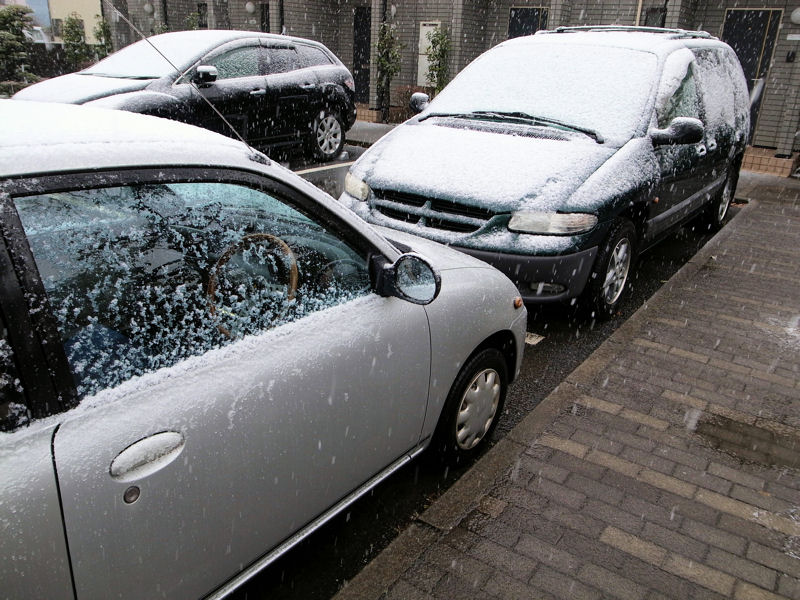 外に出てみると車はご覧の通り、それなりに積もっていました。