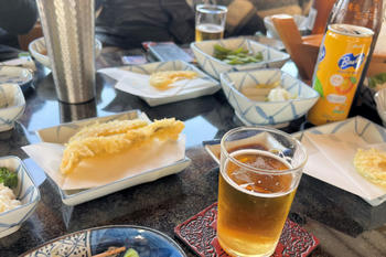 刺し盛り、揚げたて天ぷらで益々お酒が進みます。(^-^)