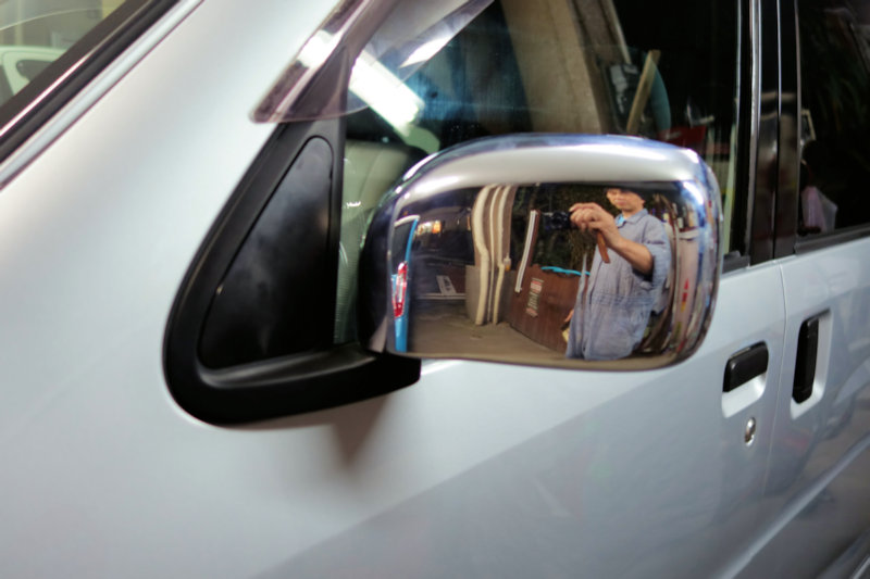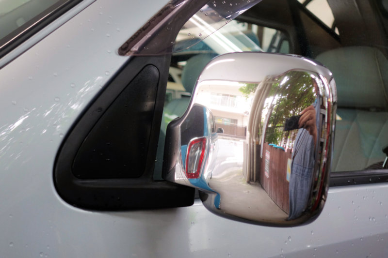 ミラーが手動式で、角度調整や格納は全て手動。