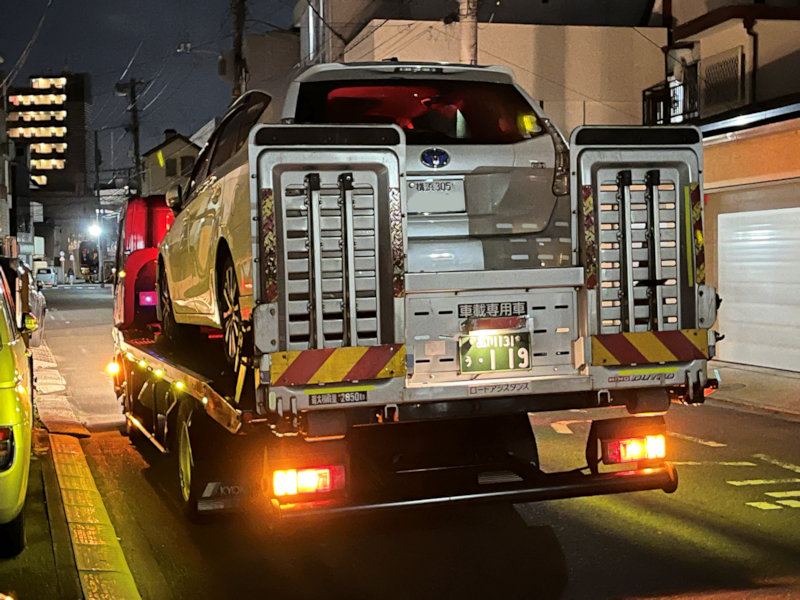 昨晩レッカーで運ばれてきたお車。