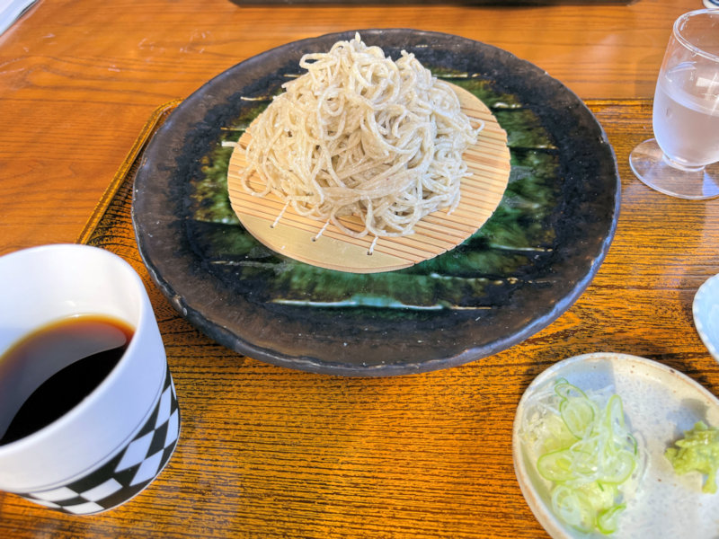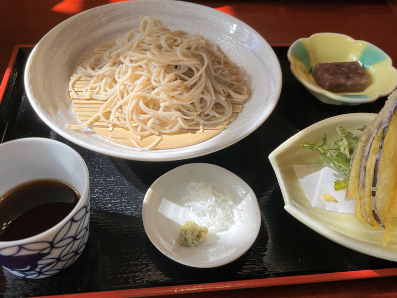 通常の蕎麦より歯ごたえがあり、飲み込んで暫くすると甘みが口の中に広がります。