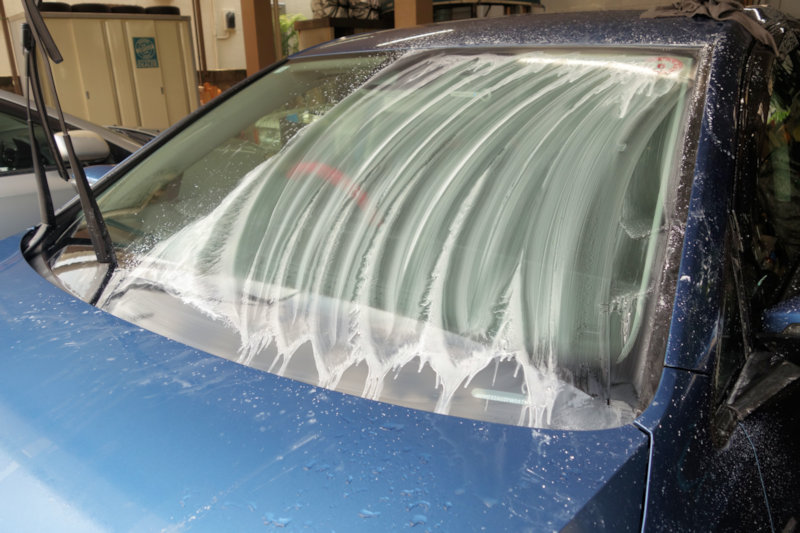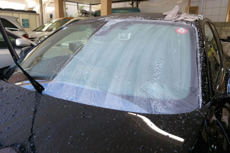 早速、ガラスの撥水加工の下準備から。